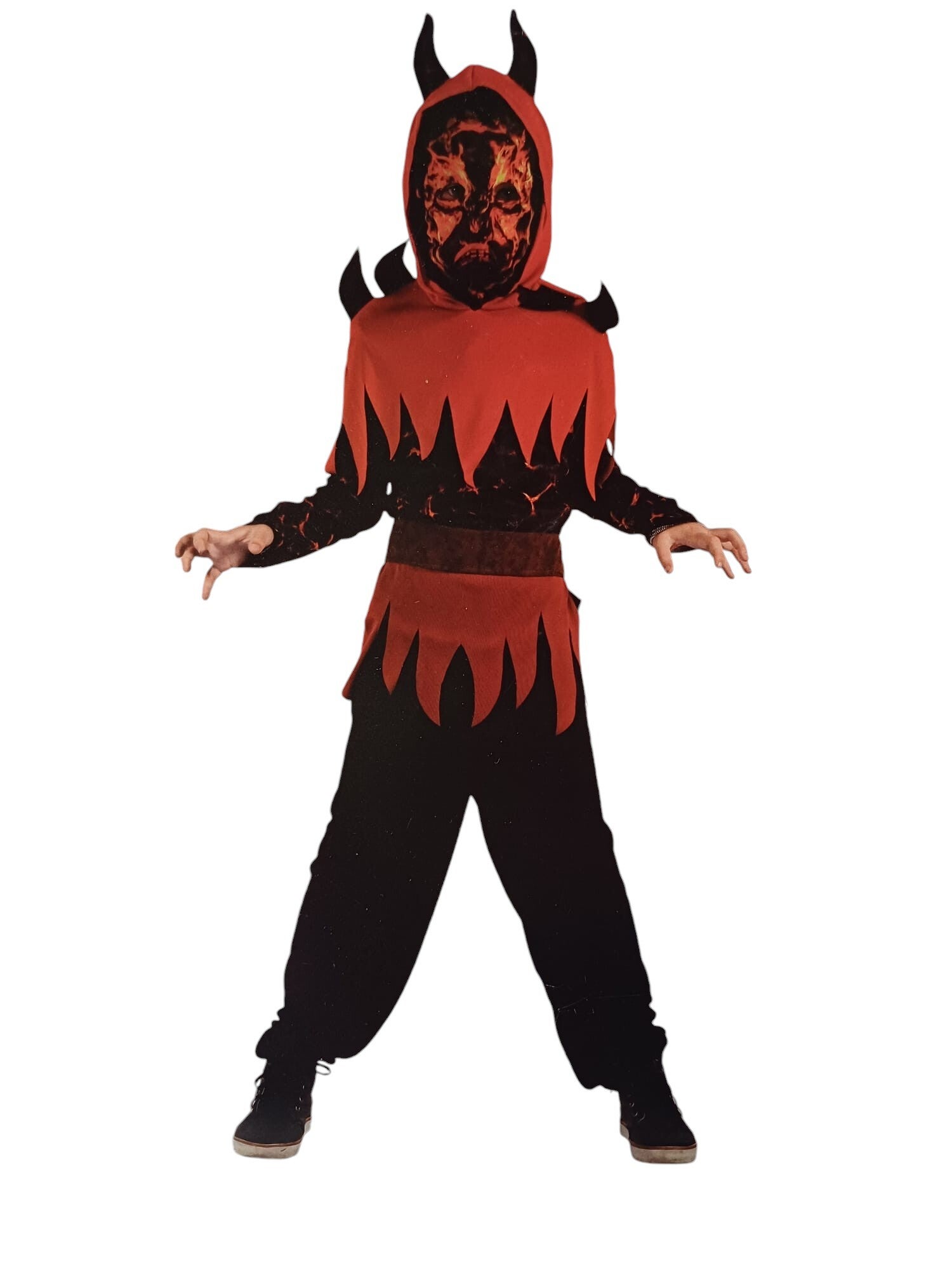 Met zijn klassieke rode tinten en demonische uitstraling, zorgt het ervoor dat je opvalt op elk verkleedfeest