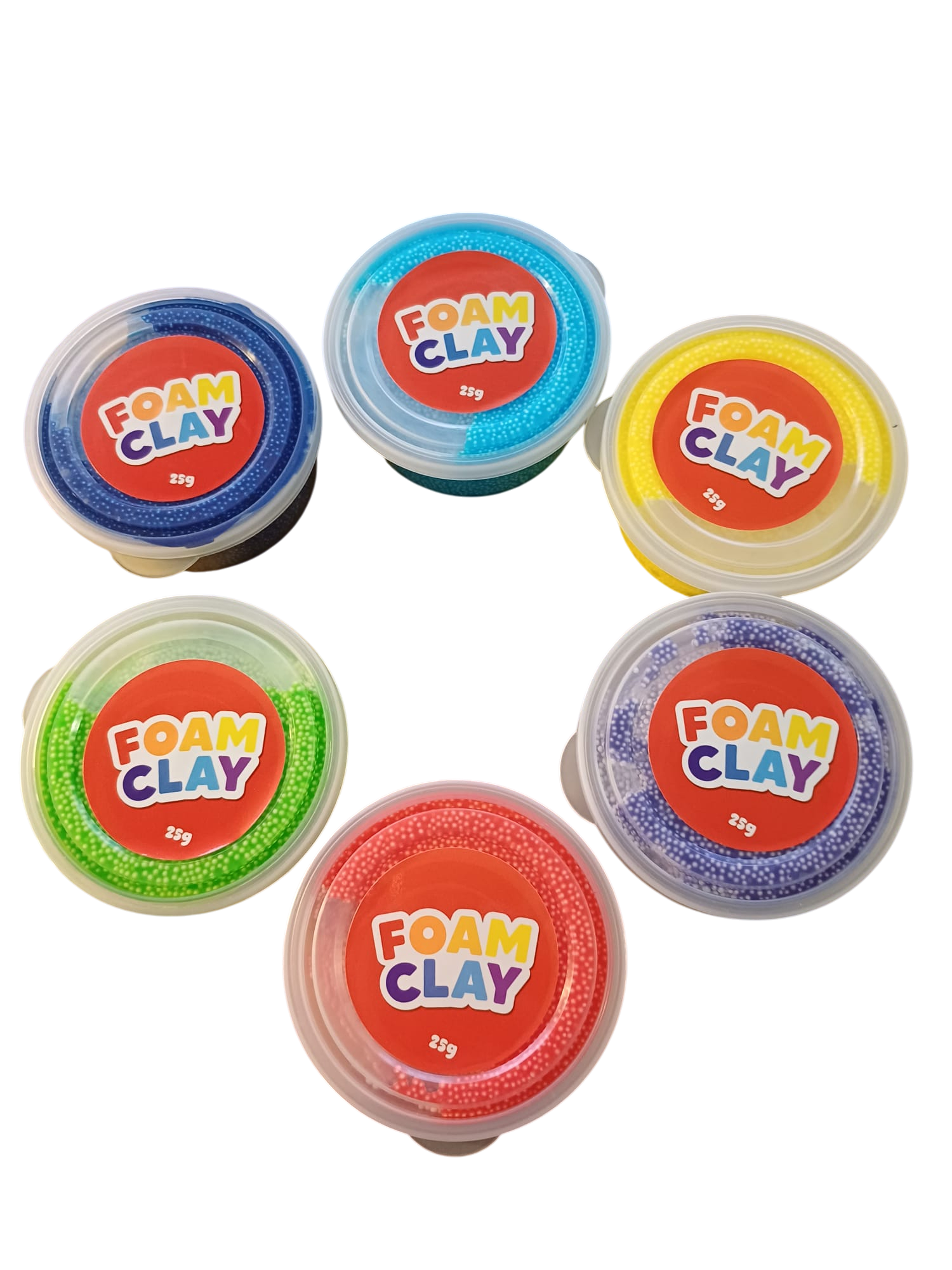 Foam clay → zachte, lichtgewicht klei met kleine foam-bolletjes, die opdroogt maar niet stuitert.